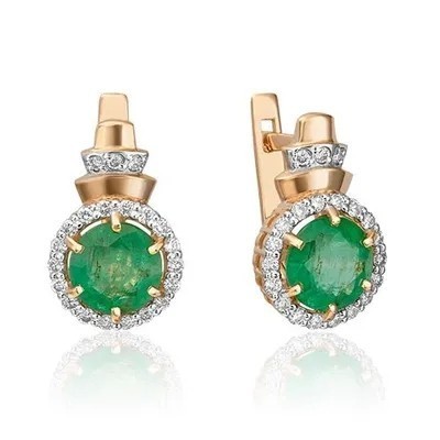 PLATINA Серьги с английским замком из красного золота 585 пробы c изумрудом и бриллиантами ₽450000.0 |