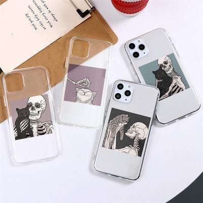 Череп Симпатичный кот Прозрачный чехол для телефона для iPhone 13 12 11 XS Samsung Galaxy A52s A70 A